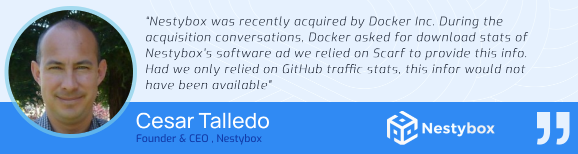 Scarf provided Nestybox with deeper insights into which companies were downloading their open-source software and opened new opportunities for the company during their recent acquisition.
