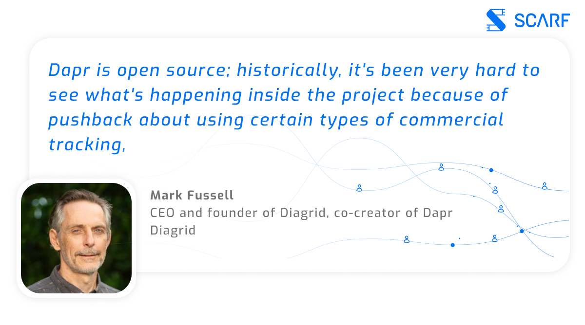 “Dapr is open source; historically, it’s been very hard to see what’s happening inside the project because of pushback about using certain types of commercial tracking,” said Mark.