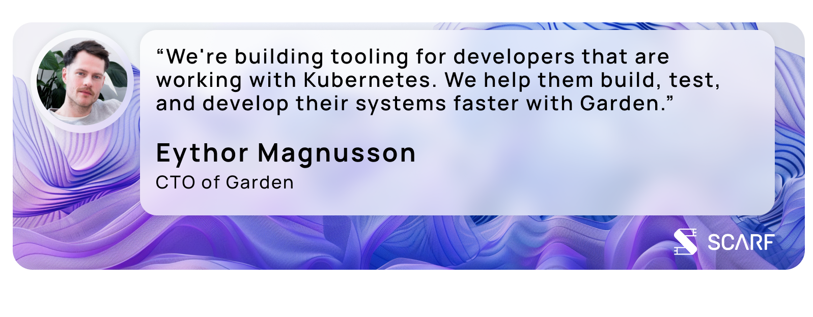 “Garden is often run from within CI pipelines. So it’s not always people that are downloading it onto laptops, but it’s also CI runners, or virtual machines,” explained Eythor. “That makes it twice hard to get meaningful data out of download metrics, that’s where Scarf comes in.”