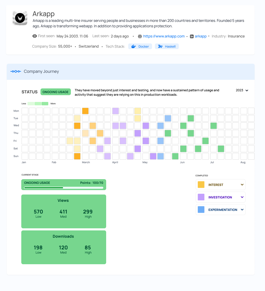 In the open source ecosystem, user behaviors are diverse and conversion tracking poses unique challenges frequently leaving traditional marketing strategies insufficient. Amidst these obstacles, we’ve observed that our customers consistently face difficulties when attempting to prioritize the growing list of companies adopting their open source project. With thousands of users and companies engaging in a variety of ways, determining where to direct attention becomes a daunting task.