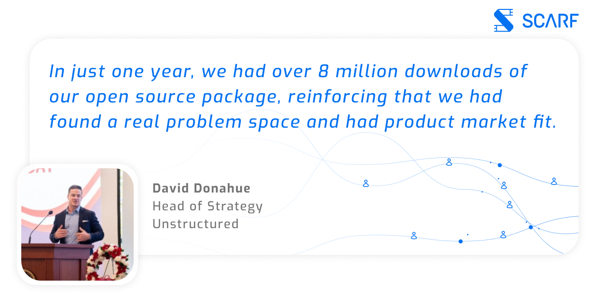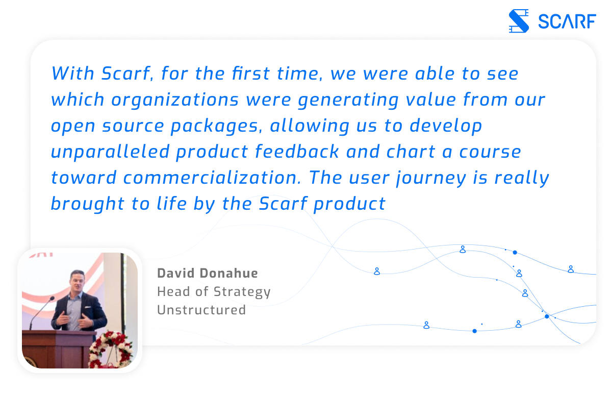 “With Scarf, for the first time, we were able to see which organizations were generating value from our open source packages, allowing us to develop unparalleled product feedback and chart a course toward commercialization. The user journey is really brought to life by the Scarf product.”