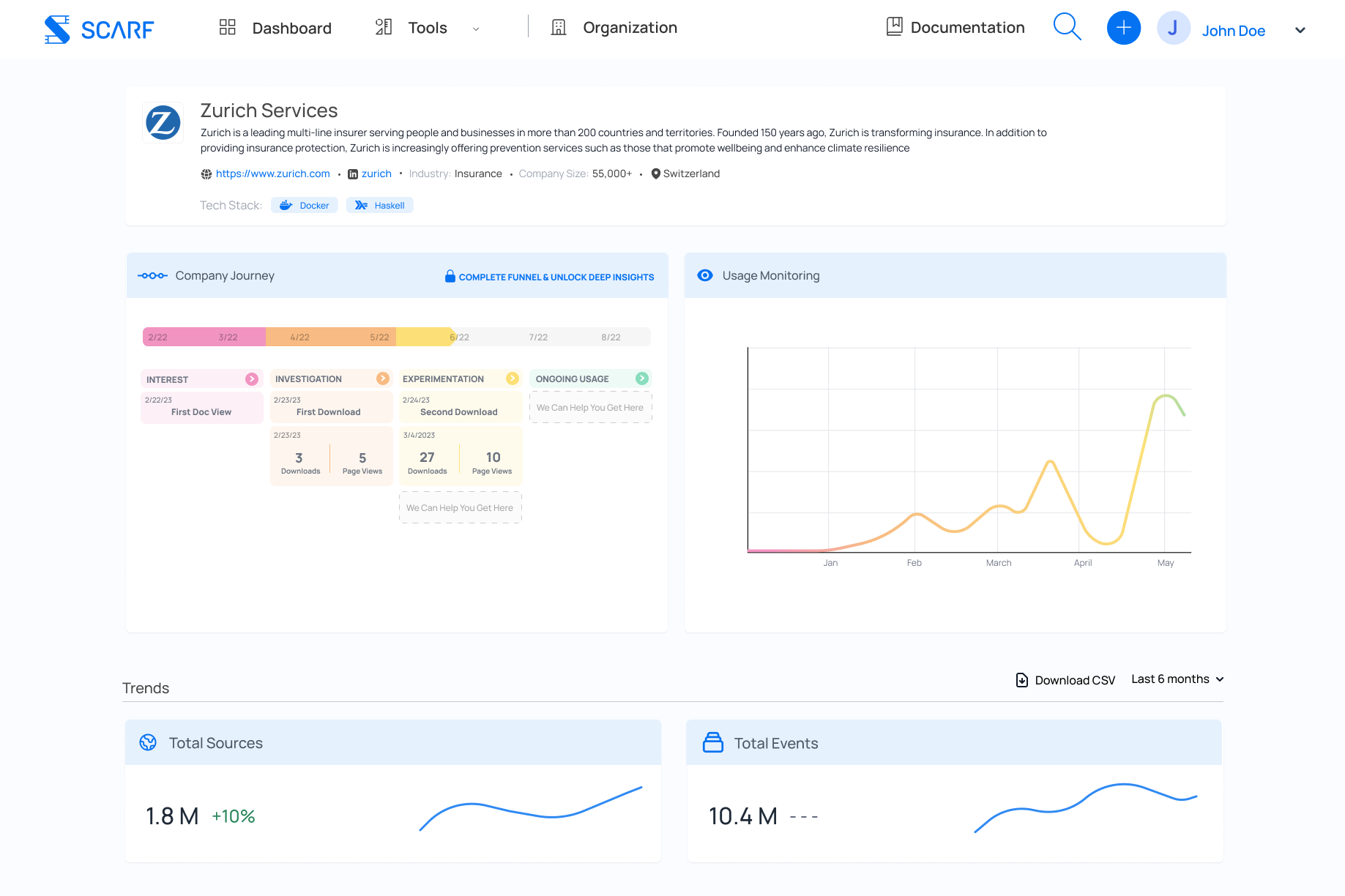 Soon, subscribers will have access to deeper analytics via an enhanced company activity dashboard in their Scarf account. This company activity dashboard will provide teams with deeper insights into how companies utilize their software. These insights will begin to identify usage patterns and trends, driving a better understanding of the end-user.