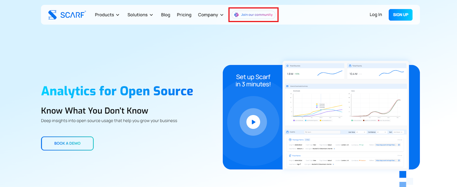 This integration is a powerful tool to strengthen your community, accelerate growth, and uncover hidden purchase signals. With Scarf and Common Room working together, open source usage insights are combined with other types of customer intelligence data to build a holistic view of your user’s journey.