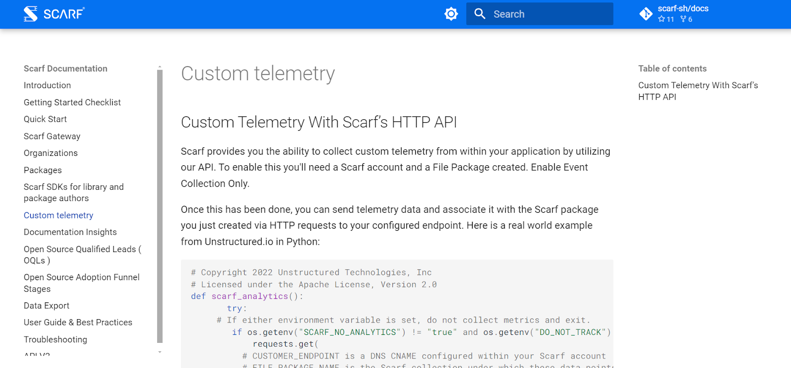 Unstructured is the perfect example of companies that have so much open source usage, but so little data. With Scarf, they were able to see for the first time which organizations were generating value from their open source packages and truly understand their users’ journey. Read more about Unstructured’s experience in this case study.