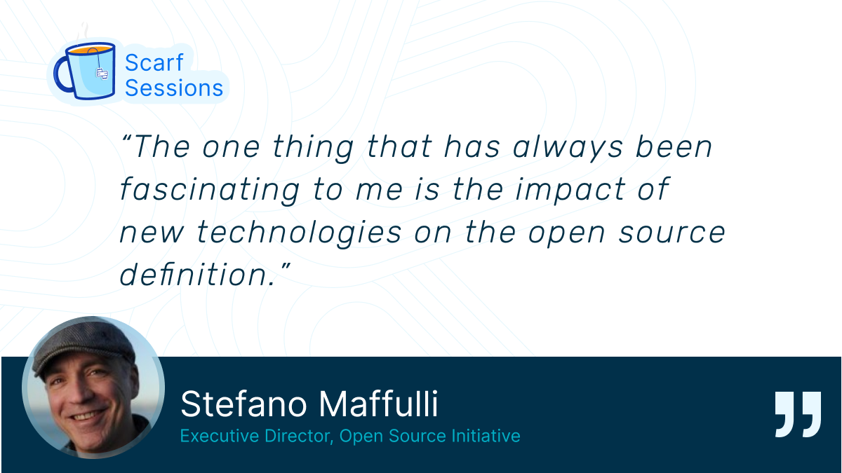 Scarf Sessions is a new stream where we have conversations with people shaping the landscape in open source and open source sustainability. This post will give a recap of the conversation Scarf CEO, Avi Press and I had with our guest Stefano Maffulli.