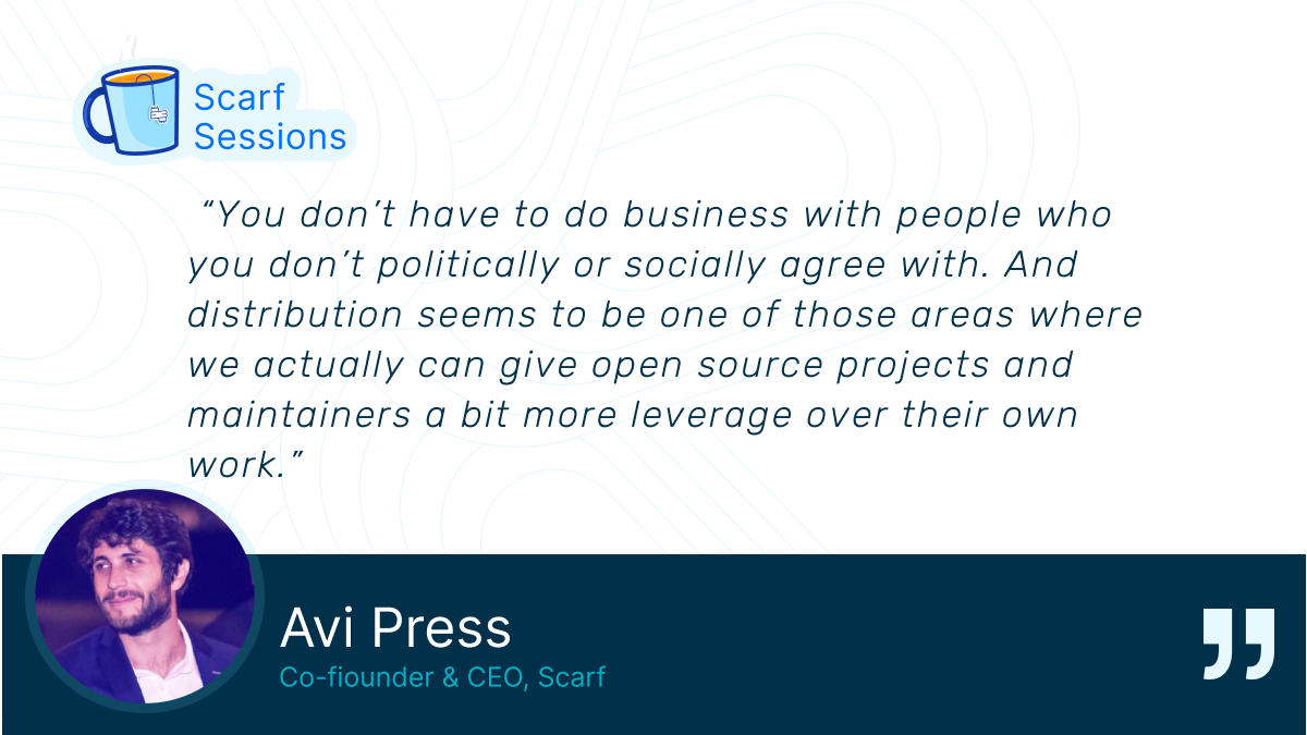 “You don’t have to do business with people who you don’t politically or socially agree with. And distribution seems to be one of those areas where we actually can give open source projects and maintainers a bit more leverage over their own work.”