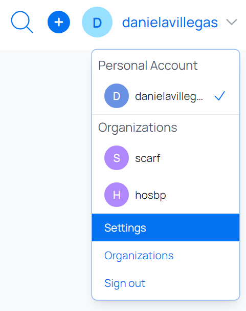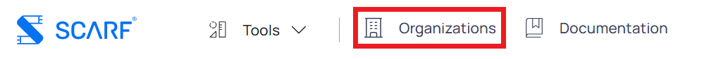 To access your new organization from the Scarf App Home Page, click the dropdown menu in the upper right corner and select your organization.