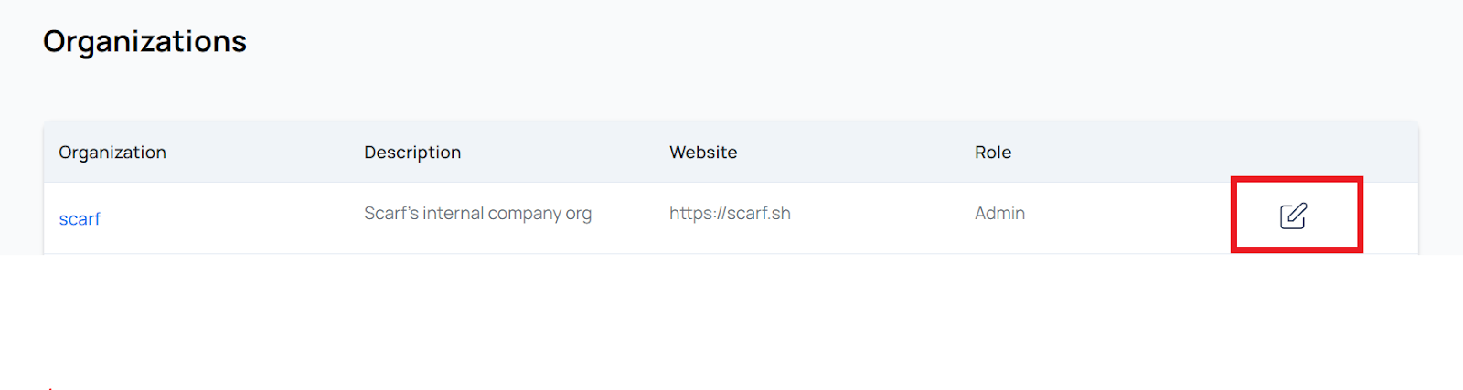 Having done this, you now have an organization you can edit by clicking Organizations, and then selecting the pencil icon.