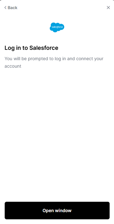 Once it’s authenticated, you will need to log in to your Salesforce account. Click Open Window.