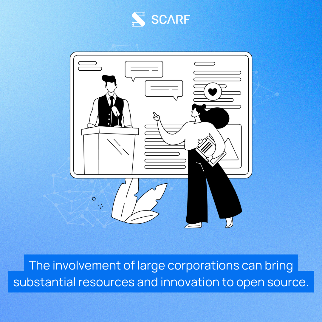 This raises an important question: Is it truly in the best interest of the open source community to entirely exclude large companies from coexisting in this space? The answer to this question is not straightforward and depends on the principles and values held by the community. While open source has thrived on collaboration and innovation, the potential involvement of large corporations also brings substantial resources, scalability and innovation. These resources can be instrumental in driving the sustainability and growth of open source projects.