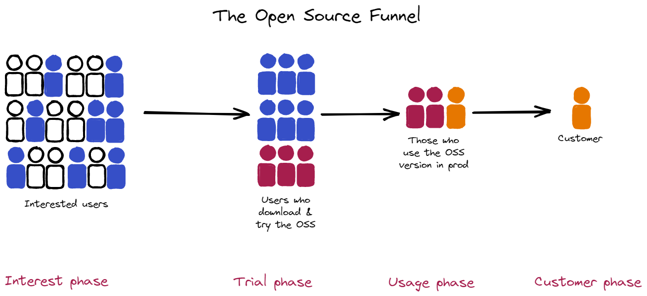 The success of all these models relies on driving people from a free to paid relationship, a journey outlined by the open source funnel.