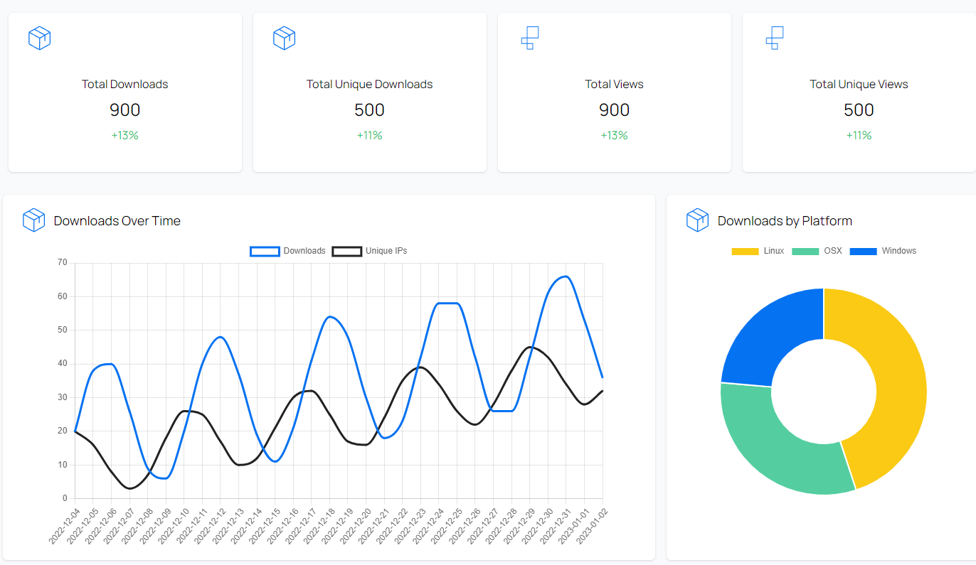 The total raw number of downloads can indicate how your project is growing but should always be taken with a pinch of salt. The risks include redownloads, whether by bots or by real users, which can skew numbers and be misleading if looked at in isolation.