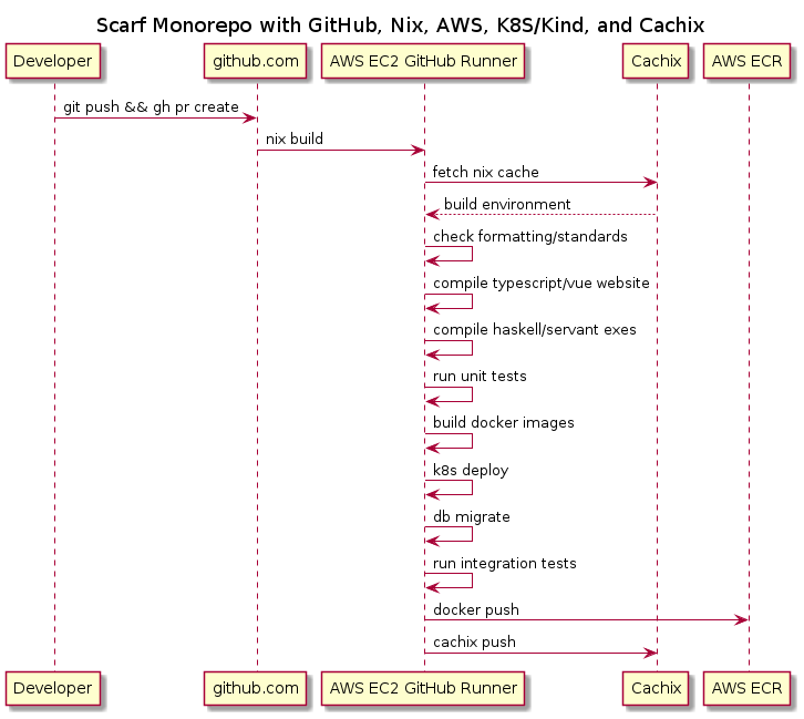 Nix also assembles our Docker images for us from the build artifacts. These are cached with Cachix and pushed to AWS ECR during the GitHub Actions build sequence.
