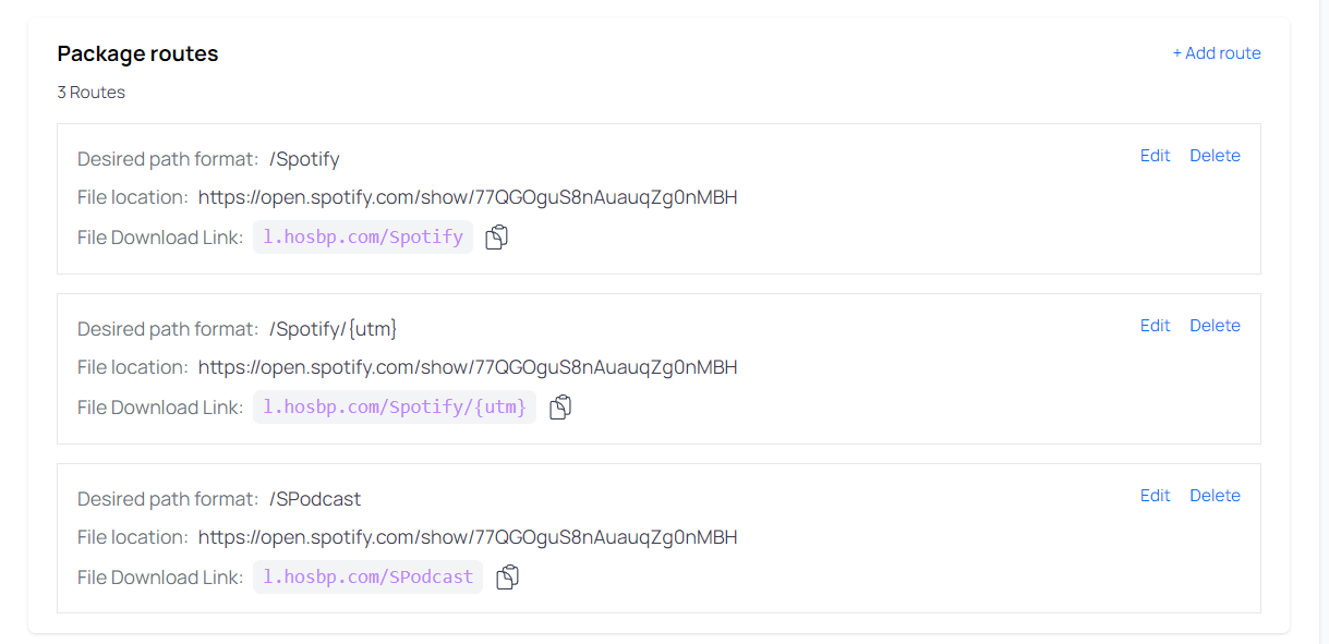 Here we created a UTM variable in the routes, allowing someone who accesses https://l.hosbp.com/Spotify/thisisautm for instance, to have their downloads not only tracked in general, but also tracked based on whatever UTM you passed. This could change to: https://l.hosbp.com/Spotify/thisisautm2